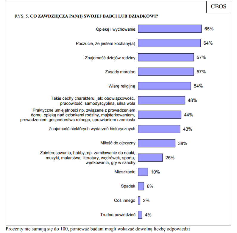 Wykres słupkowy: Co zawdzięcza Pan(i) swojej babci lub dziadkowi?