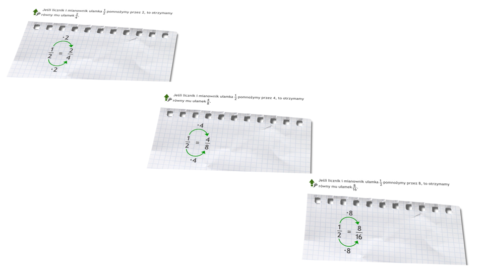 Animacja pokazuje w jaki sposób możemy rozszerzać ułamki.