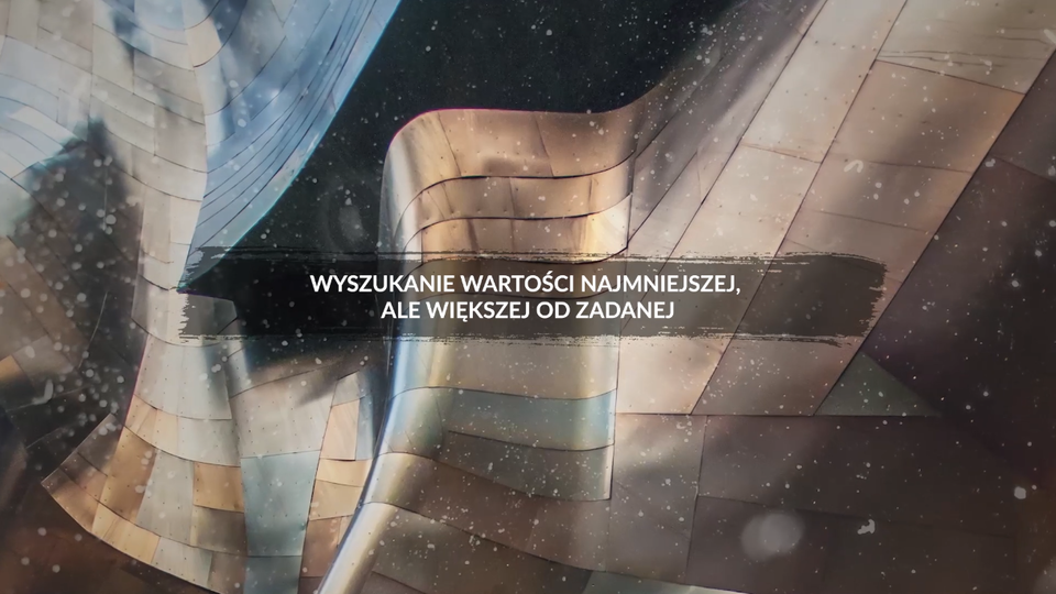 Nagranie filmowe dotyczące wyszukania wartości najmniejszej, ale większej od zadanej.