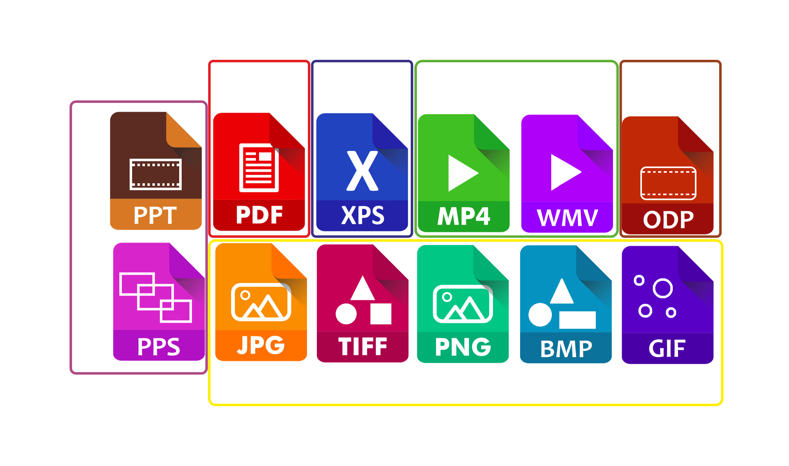 Programmes for creating presentations usually enable savingsavingsaving them in several alternative savingsavingsaving formats. For example PowerPoint, apart from .pptx files (a presentationpresentationpresentation) and .ppsx files (a slide showslide showslide show) offers the following file formats: