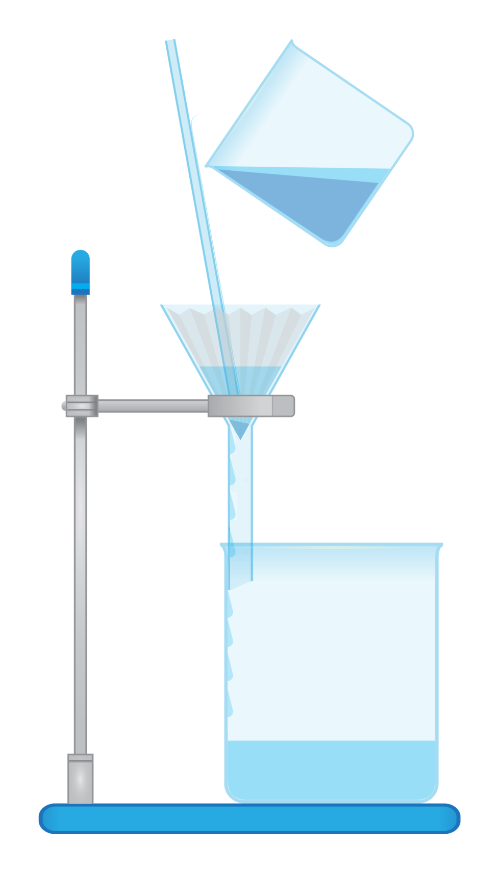 The method of separating the components of the mixture shown in the drawing is based of filtering the heterogeneous mixture through the filter found in the glass funnel. The name of the presented method for the separation of mixtures is