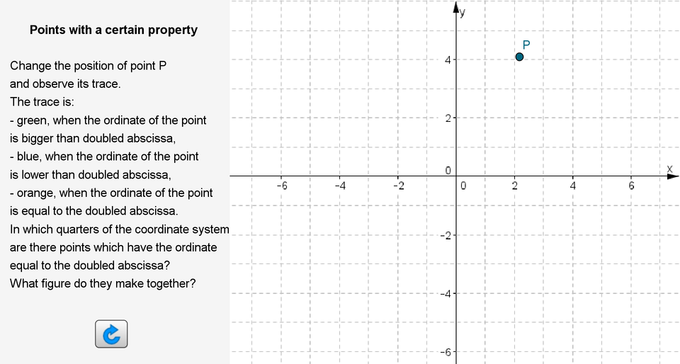 Geogebra aplet - Punkty o pewnej własności. Galeria z opisami alternatywnymi poniżej.