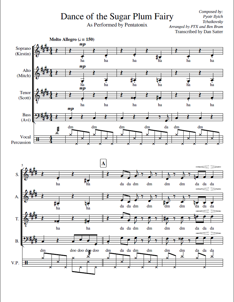 1. Dance of a sugar plum fairy (z baletu Dziadek do Orzechów), autorstwa Piotra Czajkowskiego w interpretacji a cappella.