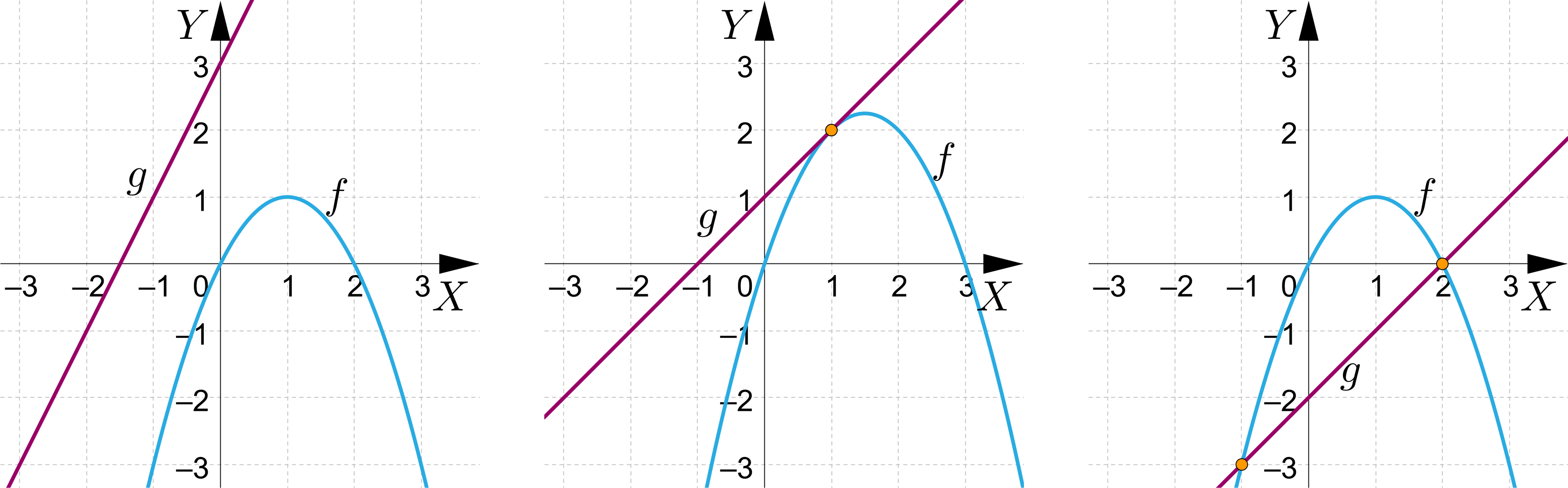<span aria-label="nawias klamrowy, układ równań, pierwsze równanie, y, równa się, początek ułamka, jeden, mianownik, cztery, koniec ułamka, x indeks górny, dwa, plus, x, koniec równania, drugie równanie, y, równa się, dwa x, minus, trzy, koniec równania, koniec układu równań" role="math"><math><mfenced open="{" close=""><mtable columnalign="left"><mtr><mtd><mi>y</mi><mo>=</mo><mfrac><mn>1</mn><mn>4</mn></mfrac><msup><mi>x</mi><mn>2</mn></msup><mo>+</mo><mi>x</mi></mtd></mtr><mtr><mtd><mi>y</mi><mo>=</mo><mn>2</mn><mi>x</mi><mo>-</mo><mn>3</mn></mtd></mtr></mtable></mfenced></math></span>, <span aria-label="nawias klamrowy, układ równań, pierwsze równanie, y, równa się, x indeks górny, dwa, plus, trzy x, koniec równania, drugie równanie, y, równa się, x, minus, cztery, koniec równania, koniec układu równań" role="math"><math><mfenced open="{" close=""><mtable columnalign="left"><mtr><mtd><mi>y</mi><mo>=</mo><msup><mi>x</mi><mn>2</mn></msup><mo>+</mo><mn>3</mn><mi>x</mi></mtd></mtr><mtr><mtd><mi>y</mi><mo>=</mo><mi>x</mi><mo>-</mo><mn>4</mn></mtd></mtr></mtable></mfenced></math></span>, <span aria-label="nawias klamrowy, układ równań, pierwsze równanie, y, równa się, początek ułamka, jeden, mianownik, cztery, koniec ułamka, x indeks górny, dwa, plus, x, koniec równania, drugie równanie, y, równa się, dwa x, plus, trzy, koniec równania, koniec układu równań" role="math"><math><mfenced open="{" close=""><mtable columnalign="left"><mtr><mtd><mi>y</mi><mo>=</mo><mfrac><mn>1</mn><mn>4</mn></mfrac><msup><mi>x</mi><mn>2</mn></msup><mo>+</mo><mi>x</mi></mtd></mtr><mtr><mtd><mi>y</mi><mo>=</mo><mn>2</mn><mi>x</mi><mo>+</mo><mn>3</mn></mtd></mtr></mtable></mfenced></math></span>, <span aria-label="nawias klamrowy, układ równań, pierwsze równanie, y, równa się, początek ułamka, jeden, mianownik, cztery, koniec ułamka, x indeks górny, dwa, plus, x, koniec równania, drugie równanie, y, równa się, minus, x, minus, cztery, koniec równania, koniec układu równań" role="math"><math><mfenced open="{" close=""><mtable columnalign="left"><mtr><mtd><mi>y</mi><mo>=</mo><mfrac><mn>1</mn><mn>4</mn></mfrac><msup><mi>x</mi><mn>2</mn></msup><mo>+</mo><mi>x</mi></mtd></mtr><mtr><mtd><mi>y</mi><mo>=</mo><mo>-</mo><mi>x</mi><mo>-</mo><mn>4</mn></mtd></mtr></mtable></mfenced></math></span>, <span aria-label="nawias klamrowy, układ równań, pierwsze równanie, y, równa się, x indeks górny, dwa, minus, trzy x, koniec równania, drugie równanie, y, równa się, x, minus, cztery, koniec równania, koniec układu równań" role="math"><math><mfenced open="{" close=""><mtable columnalign="left"><mtr><mtd><mi>y</mi><mo>=</mo><msup><mi>x</mi><mn>2</mn></msup><mo>-</mo><mn>3</mn><mi>x</mi></mtd></mtr><mtr><mtd><mi>y</mi><mo>=</mo><mi>x</mi><mo>-</mo><mn>4</mn></mtd></mtr></mtable></mfenced></math></span>, <span aria-label="nawias klamrowy, układ równań, pierwsze równanie, y, równa się, początek ułamka, jeden, mianownik, cztery, koniec ułamka, x indeks górny, dwa, minus, x, koniec równania, drugie równanie, y, równa się, dwa x, minus, trzy, koniec równania, koniec układu równań" role="math"><math><mfenced open="{" close=""><mtable columnalign="left"><mtr><mtd><mi>y</mi><mo>=</mo><mfrac><mn>1</mn><mn>4</mn></mfrac><msup><mi>x</mi><mn>2</mn></msup><mo>-</mo><mi>x</mi></mtd></mtr><mtr><mtd><mi>y</mi><mo>=</mo><mn>2</mn><mi>x</mi><mo>-</mo><mn>3</mn></mtd></mtr></mtable></mfenced></math></span>