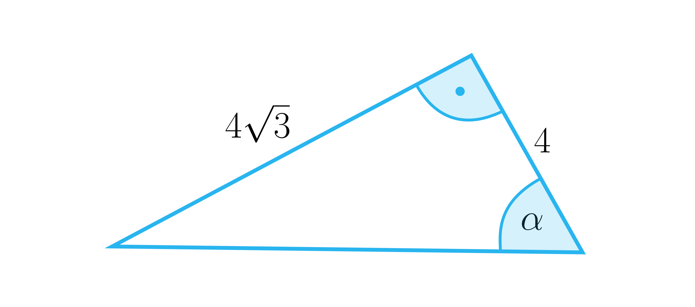 W trójkącie prostokątnym długość przeciwprostokątnej jest równa , a jeden z kątów ostrych jest równy . Obwód tego trójkąta wynosi: