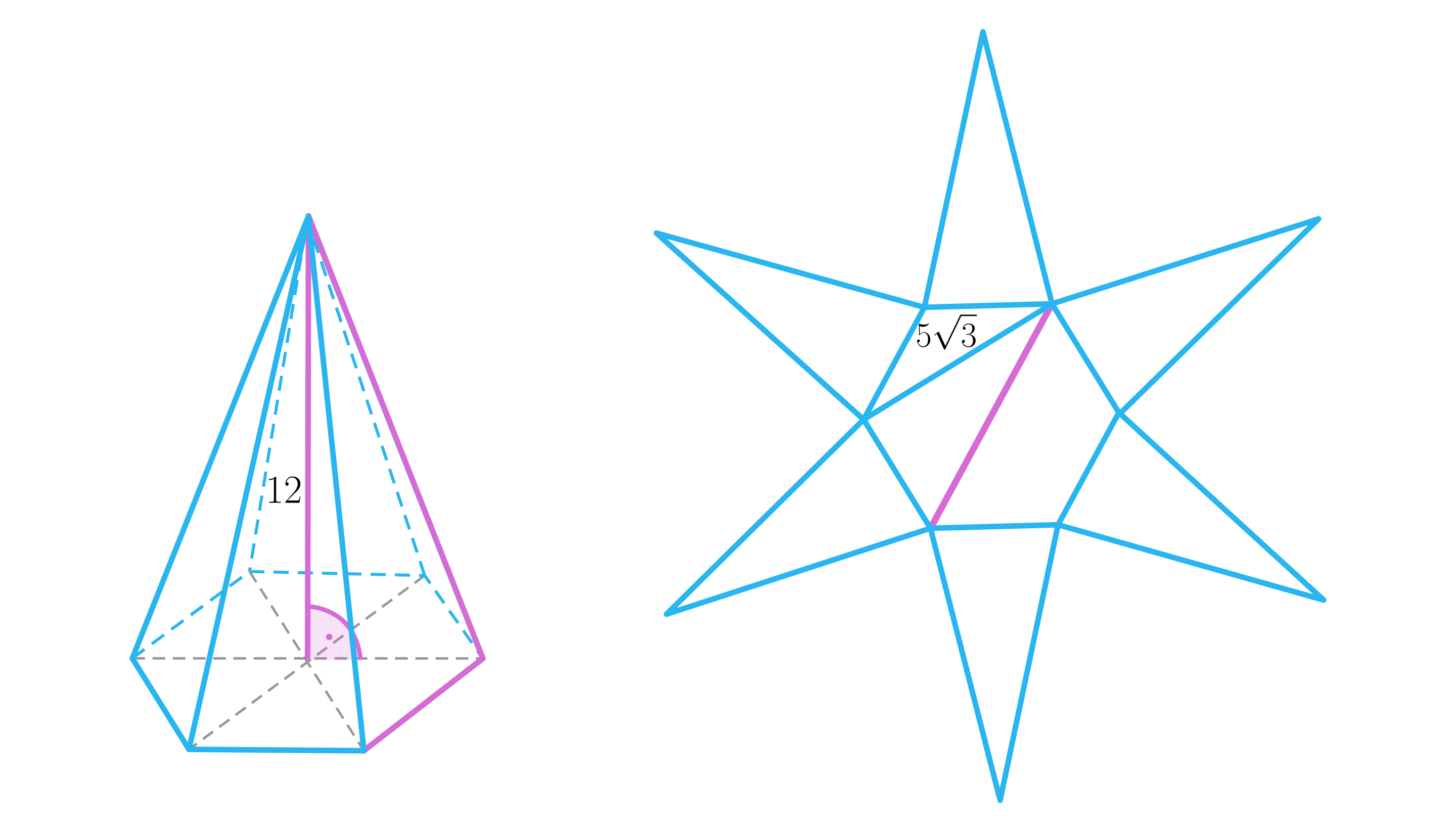 Oblicz, różnicę pomiędzy trasami do (zaznaczoną na poniższym rysunku na różowo) a najkrótszą trasą od punktu do zawierającą się w powierzchni ostrosłupa.