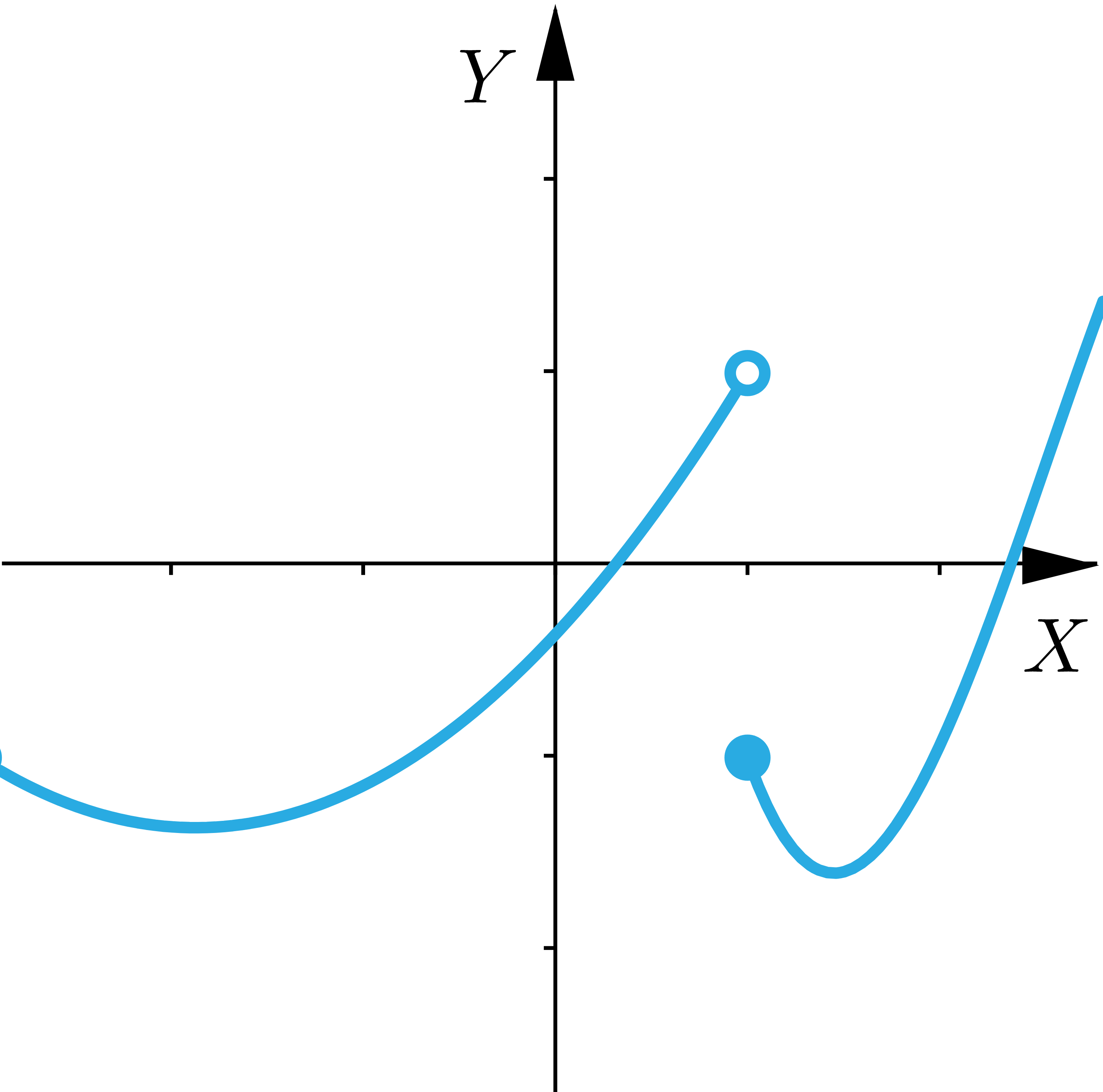 Wskaż wykresy funkcji, które mają punkt nieciągłości typu "luka".