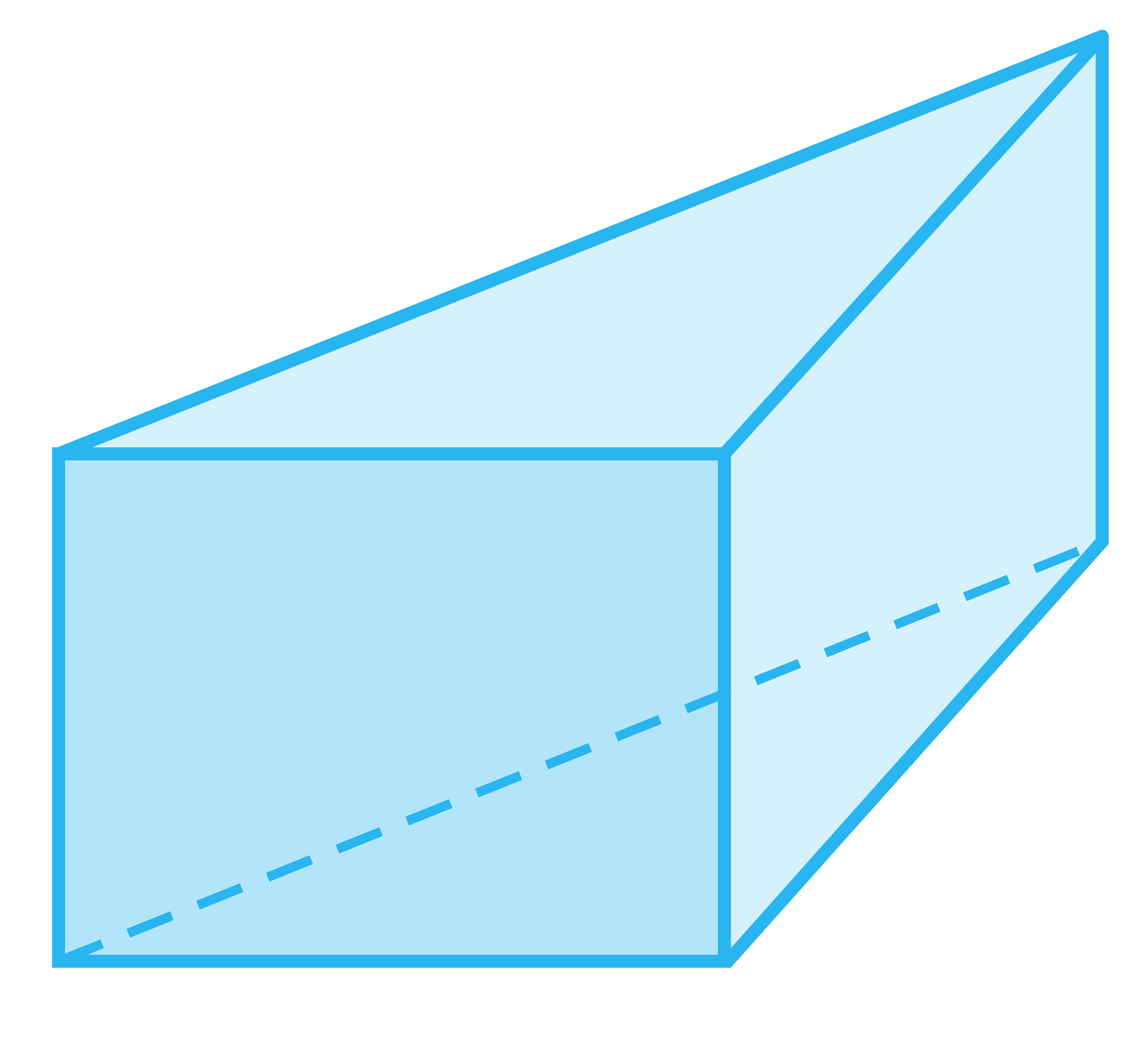 - Ostrosłup o podstawie kwadratu i prostopadłościan połączone identyczną krawędzią.