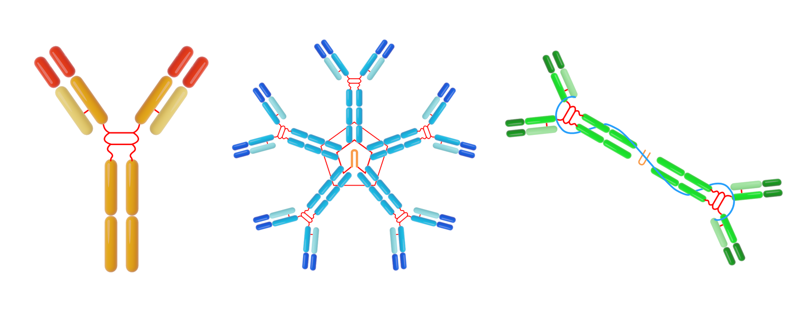 Przyporządkuj klasy przeciwciał do odpowiednich schematów.