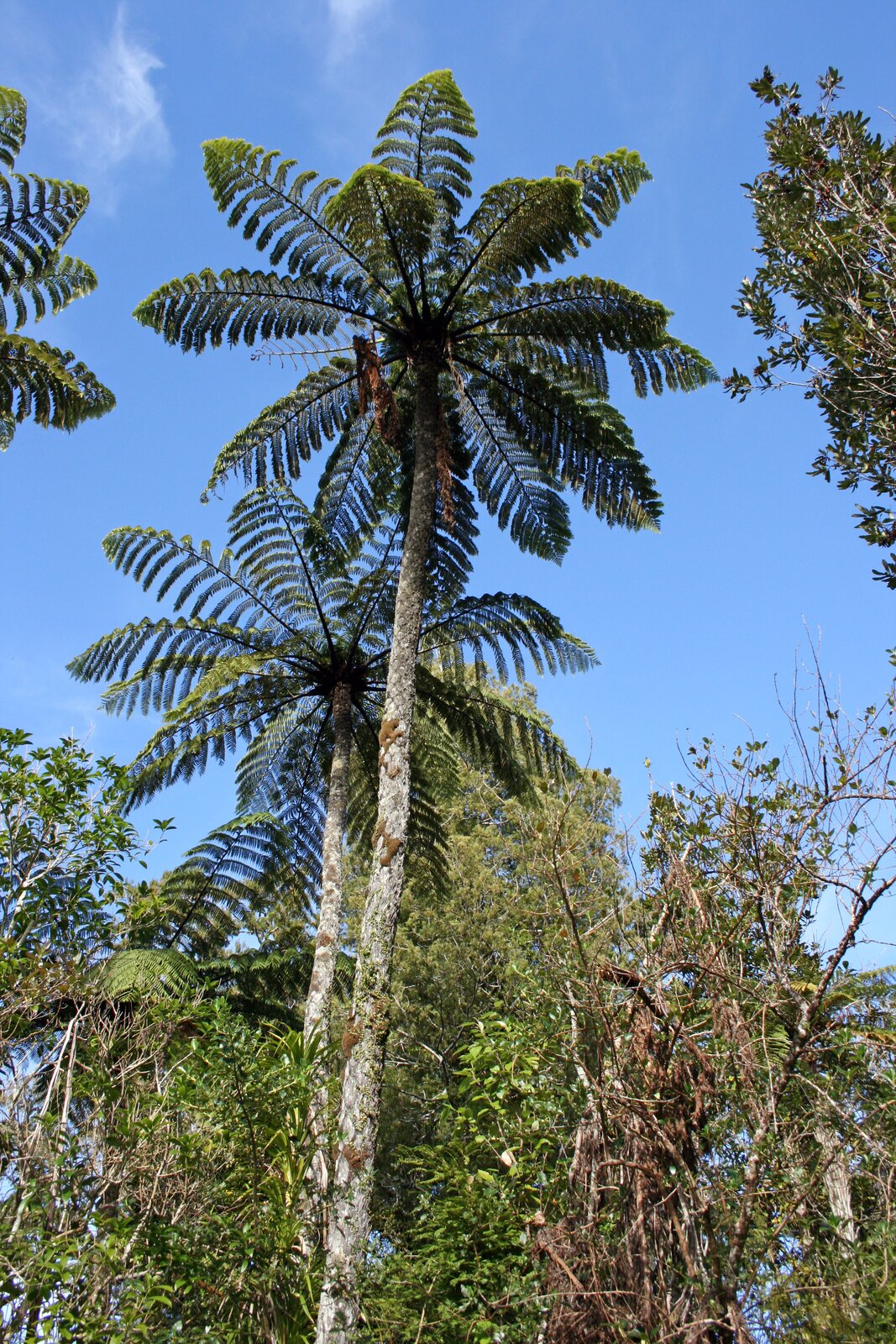 | Osobniki Cyathea medullaris mogą osiągać tak duże rozmiary ze względu na wysoką wilgotność powietrza i średnią ilość opadów występującą w górskich lasach Nowej Zelandii. Woda jest niezbędna do zapłodnienia, które w przypadku tej paproci zachodzi na wysokości nawet 25 m. | □ | □ |
