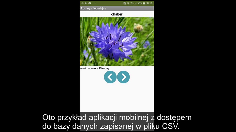 Film nawiązujący do treści materiału: Przykład aplikacji na urządzenie mobilne z dostępem do bazy zapisanej w pliku CSV.