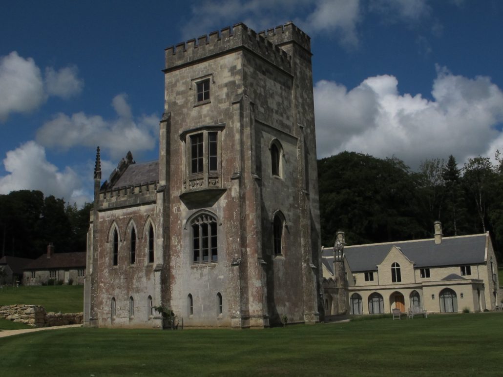 Pozostałości po opactwie Fonthill z domem w tle, wikimedia.org, CC BY 3.0