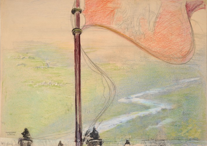 Treści patriotyczno‑symboliczne prezentuje obraz Wisła – pejzaż i powiewający sztandar, powstały dwa lata po odzyskaniu przez Polskę niepodległości. Jest wyrazem patriotyzmu malarza i świadomości narodowej. Wkomponowany w narodowy pejzaż sztandar z godłem Polski stanowi podwójny akcent Polskości.