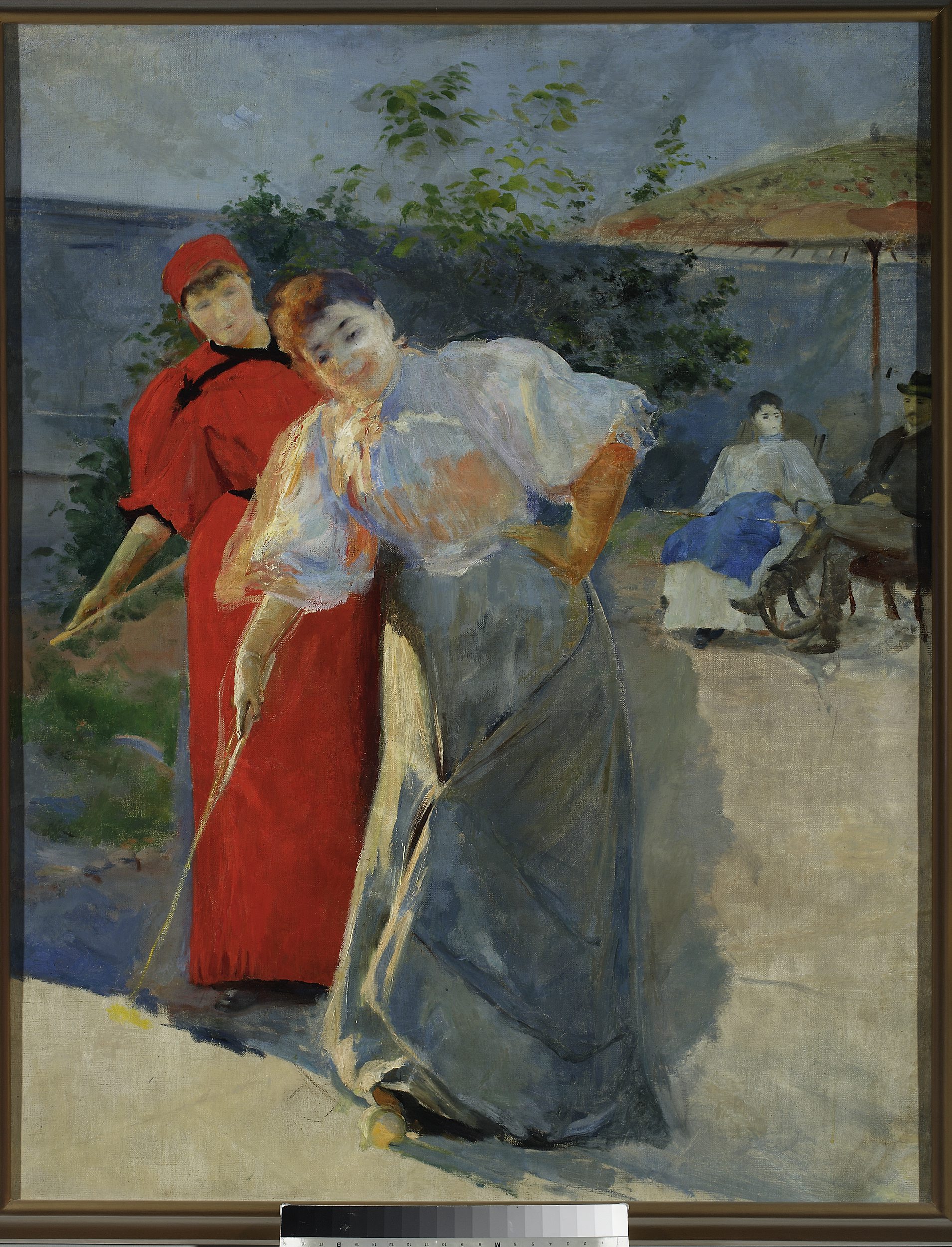 Do tematyki z lat osiemdziesiątych malarz powrócił w kolejnej dekadzie. Wyszedł jednak poza salon, ukazując życie towarzyskie w plenerze. W obrazie „Gra w krokieta”, ukończonym w 1895 roku, podjął temat popularnej wówczas towarzyskiej zabawy. Przedstawił scenę w słonecznym ogrodzie, sięgając po efekty impresjonistyczne.