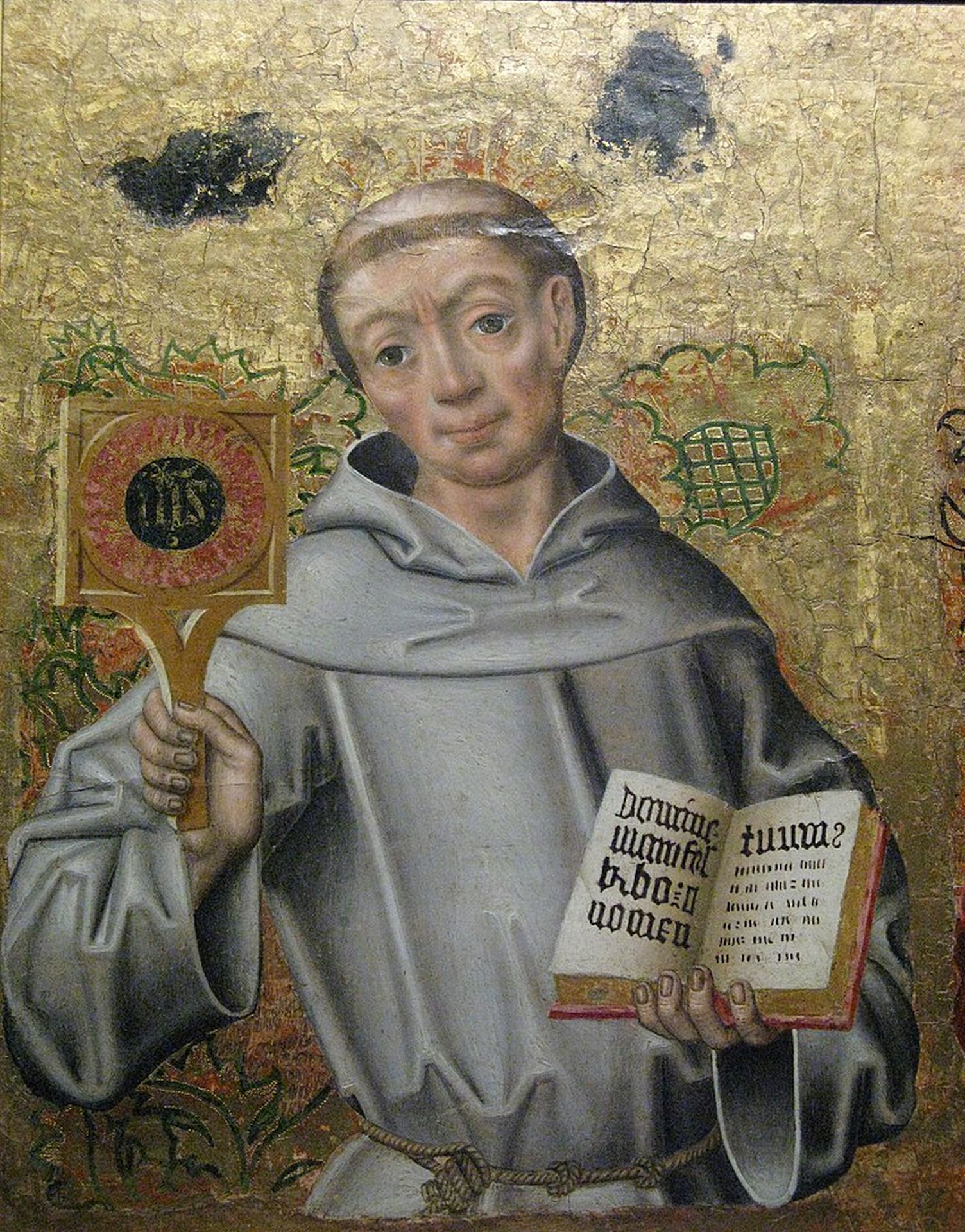 autor nieznany, „Święty Bernard z chrystogramem IHS”, XVI w., Langeais Castle, Francja, wikimedia.org, domena publiczna
