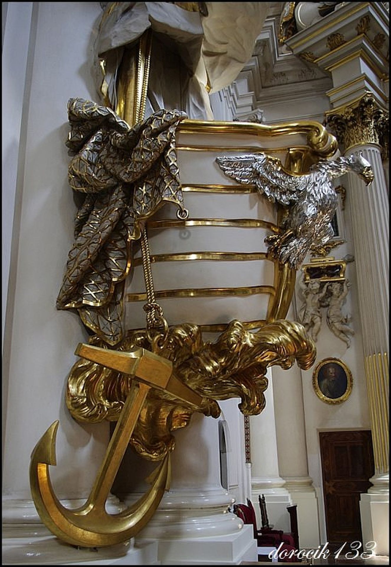 Symbol kotwicy z ambony kościoła Wizytek w Warszawie, Jan Jerzy Plersch, garnek.pl, CC BY 3.0