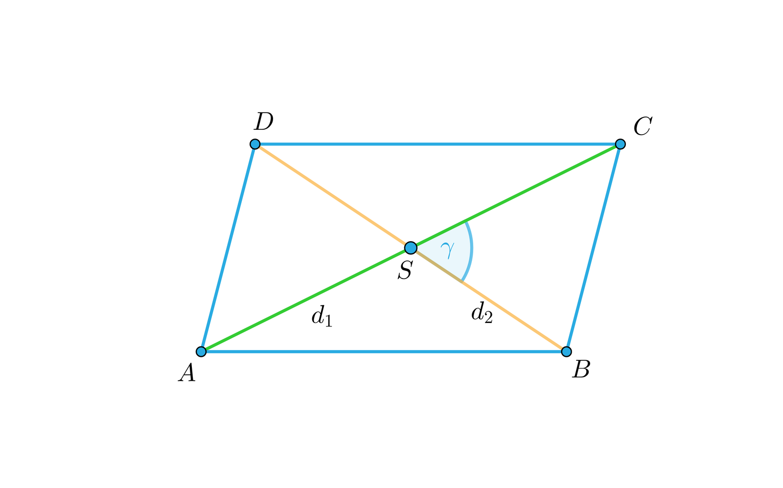 Symulacja przedstawia figury geometryczne. Można wybierać pomiędzy równoległobokiem, prostokątem, rombem, kwadratem oraz deltoidem. Suwakami zmieniamy wartości przekątnych i kąta między nimi. Przykład pierwszy. Równoległobok. Pole równoległoboku jest równe d1·d22sinγ. D indeks dolny 1 koniec indeksu równe 7, d indeks dolny 2 koniec indeksu równe 4, a kąt między przekątnymi równy 90 stopni. Pole czworokąta ABCD równe 24 przecinek pięć. Przykład drugi. Prostokąt. Pole prostokąta gdzie d równe d indeks dolny 1 koniec indeksu równe d indeks dolny 2 koniec indeksu Pole jest równe d22·sinγ. D indeks dolny 1 koniec indeksu równe 5, kąt między przekątnymi równy 64 stopnie, pole czworokąta równe 11 przecinek 23 jednostki. Przykład trzeci. Romb. Pole rombu jest równe d1·d22. D indeks dolny 1 koniec indeksu równe 3, d indeks dolny 2 koniec indeksu równe jeden. Pole czworokąta wynosi półtorej. Przykład czwarty. Kwadrat. Pole kwadratu jest równe d22. D indeks dolny 1 koniec indeksu równe 4, pole kwadratu równe osiem. Przykład piąty. Deltoid. Pole deltoidu jest równe d1·d22. D indeks dolny 1 koniec indeksu równe 4, d indeks dolny 2 koniec indeksu równe sześć. Pole czworokąta równe dwanaście.