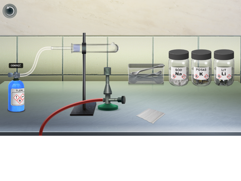 Czy wiesz, w jaki sposób litowce reagują z tlenem? Korzystając z zamieszczonej poniżej instrukcji, przeprowadzono przedstawione w symulacji. Zapoznaj się z jej opisem, a następnie rozwiąż ćwiczenia sprawdzające.
