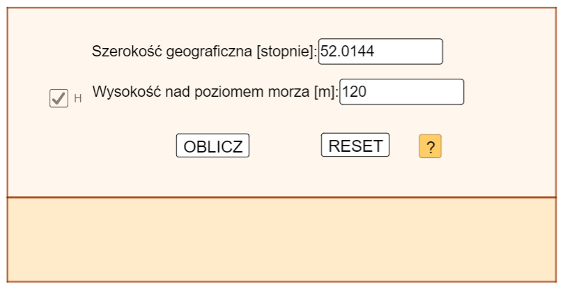 Korzystając z poniższego kalkulatora możesz wyznaczyć przybliżoną wartość przyspieszenia grawitacyjnego w twojej okolicy. By to uczynić, sprawdź najpierw (na przykład w Internecie), jaka jest szerokość geograficzna interesującego cię miejsca oraz na jakiej wysokości nad poziomem morza się ono znajduje. Następnie uzupełnij odpowiednie pola w kalkulatorze i kliknij przycisk „Oblicz”. Uwaga: kalkulator wykorzystuje kropkę jako separator dziesiętny.