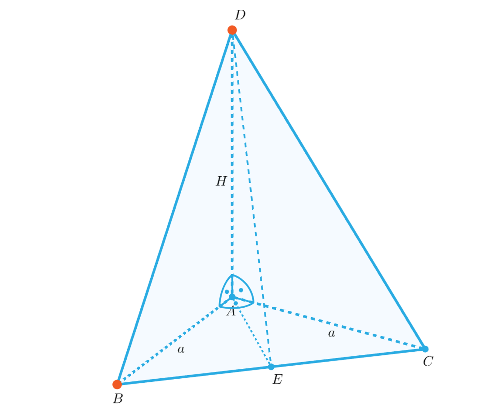 Oblicz objętość ostrosłupa z rysunku, gdy , wysokość . Wiedząc, że w podstawie jest trójkąt prostokątny równoramienny.