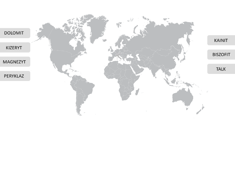 Czy znasz związki magnezu, wiesz gdzie występują i jakie mają zastosowania? W poniższej symulacji możesz to sprawdzić. Wybierając odpowiedni minerał, zostaje podświetlony obszar jego występowania. Następnie masz możliwość powtórzenia znajomości nazywania związków chemicznych. Jeśli podasz poprawną nazwę poznasz zastosowanie wybranego minerału oraz stopień twardości w skali Mohsa. Jeśli nie znasz poprawnej nazwy możesz skorzystać z podpowiedzi.