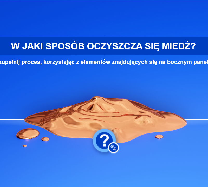 Zapoznaj się z tekstem zawartym w harmonii, a następnie zapoznaj się z opisem symulacji. Zwróć uwagę na to, jakie urządzenia stosowane są podczas procesu oczyszczania miedzi oraz jakie pełnią funkcje. Na końcu rozwiąż ćwiczenia sprawdzające.