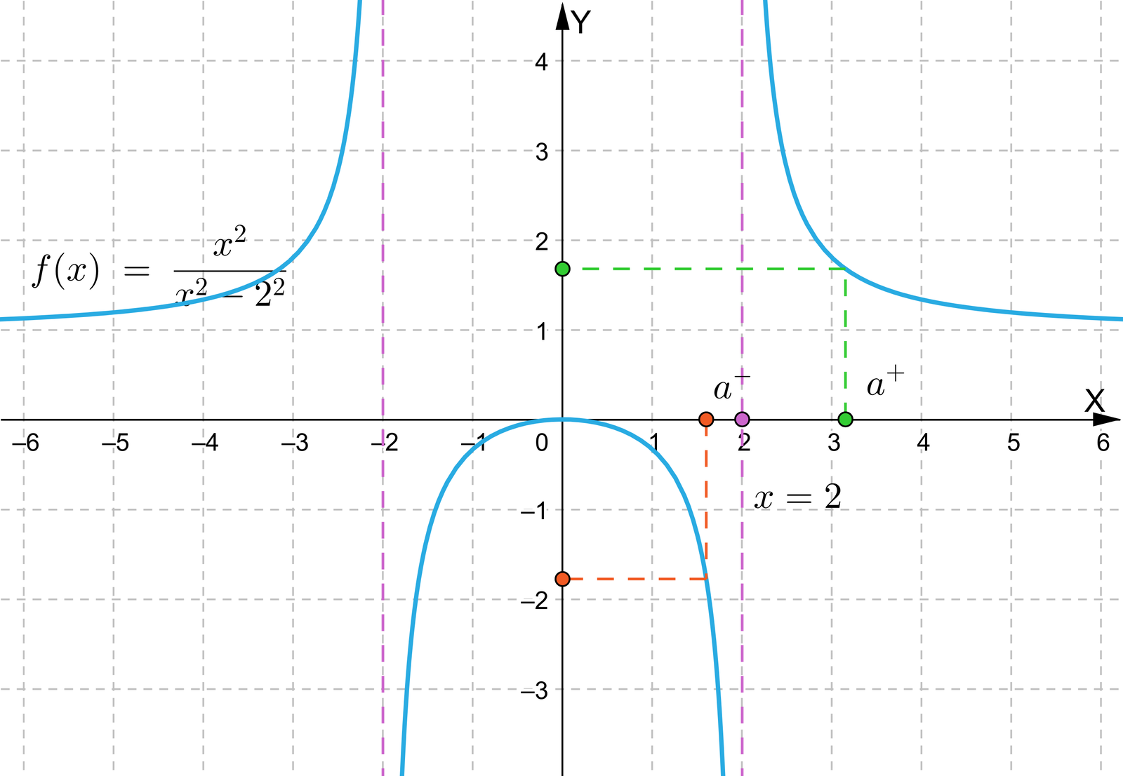 Dla jakich rzeczywistych wartości parametru funkcja posiada punkt, w którym ma granicę niewłaściwą? Skorzystaj z powyższego wykresu ustawiając suwak wartości parametru na dowolnie wybrane wartości.