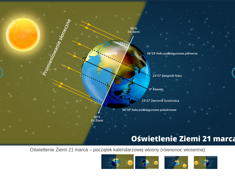 Zmiana kąta padania promieni słonecznych w dniach przesilenia i równonocy w ciągu roku