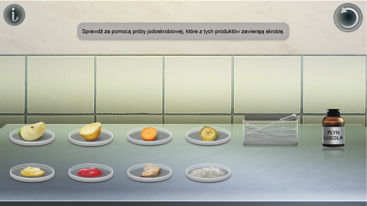 Czy potrafisz wymienić produkty, które zawierają skrobię? Czy wiesz, jak zbadać jej obecność? Zapoznaj się z poniższą symulacją, a następnie rozwiąż zadania.