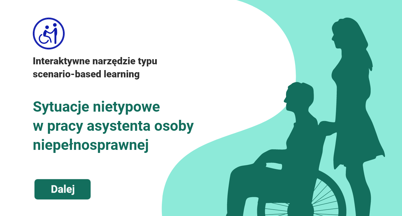 Interaktywne narzędzie typu scenario‑based learning wykorzystuje model uczenia się na podstawie przypadków w oparciu o scenariusze. Gracz rozwiązuje kolejne problemy, z jakimi może się spotkać asystent osoby niepełnosprawnej podczas pracy, i podejmuje decyzje w różnych trudnych lub nietypowych sytuacjach, które wymagają kreatywności, otwartości na zmiany, współpracy i dobrej komunikacji.