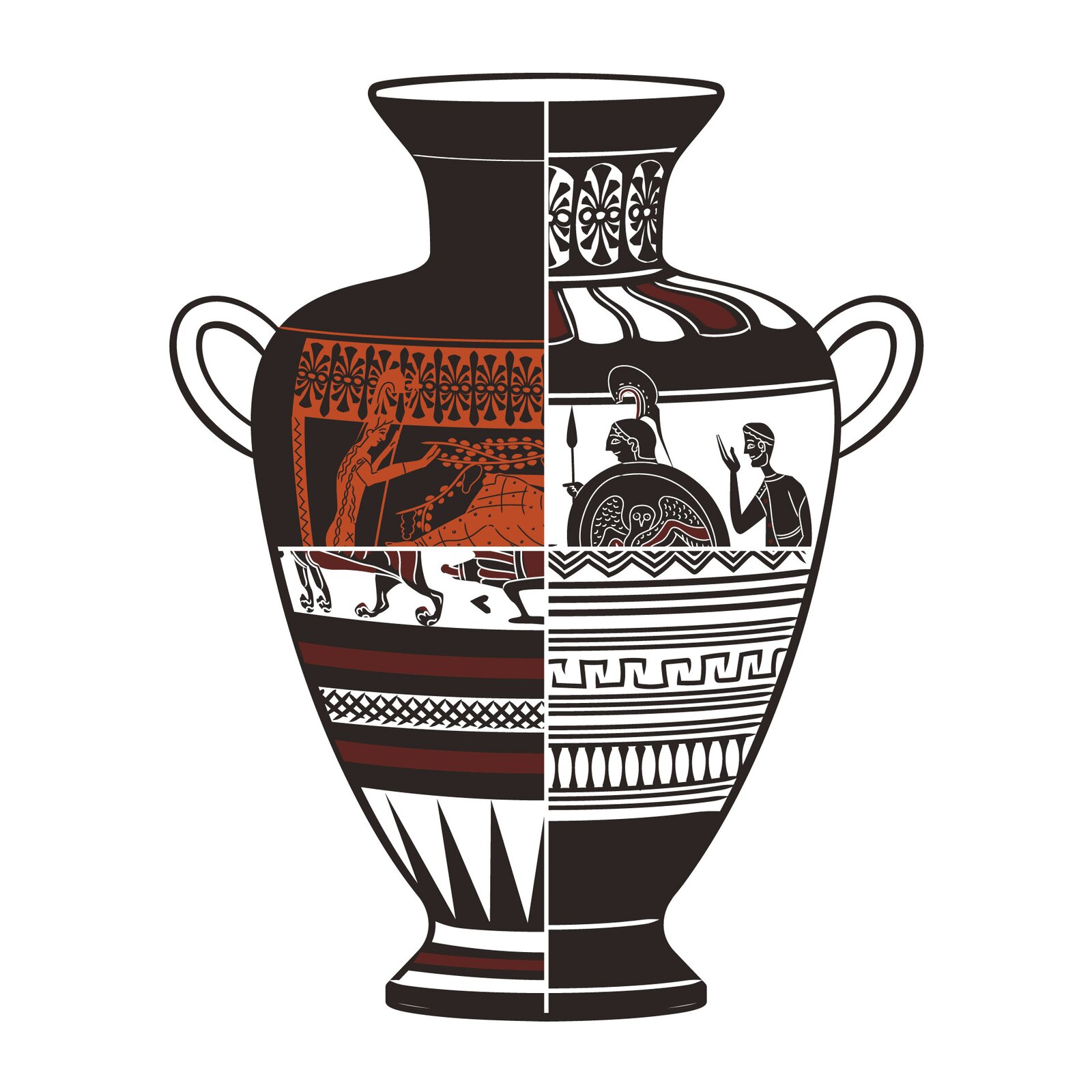 Obserwując dekorację waz można prześledzić stopniowy postęp w zakresie opanowania anatomii ciała ludzkiego, coraz bardziej realistycznego ujęcia szat, pozy, gestu i wyrazu twarzy ukazywanych postaci.