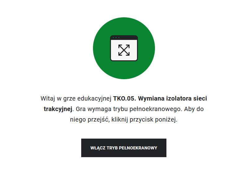 W celu uruchomienia gry, należy kliknąć w przycisk „WŁĄCZ TRYB PEŁNOEKRANOWY”.