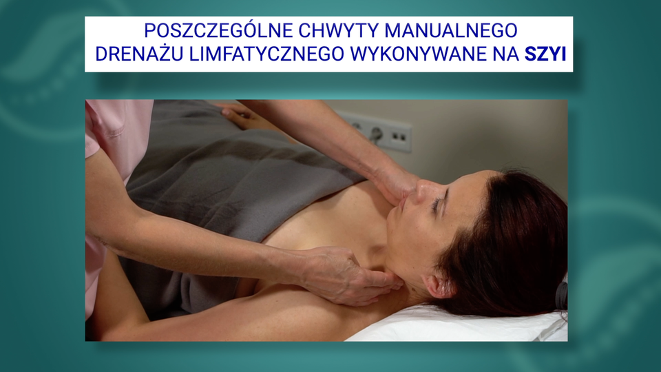 Film przedstawiający poszczególne chwyty manualnego drenażu limfatycznego wykonywane w obrębie szyi.