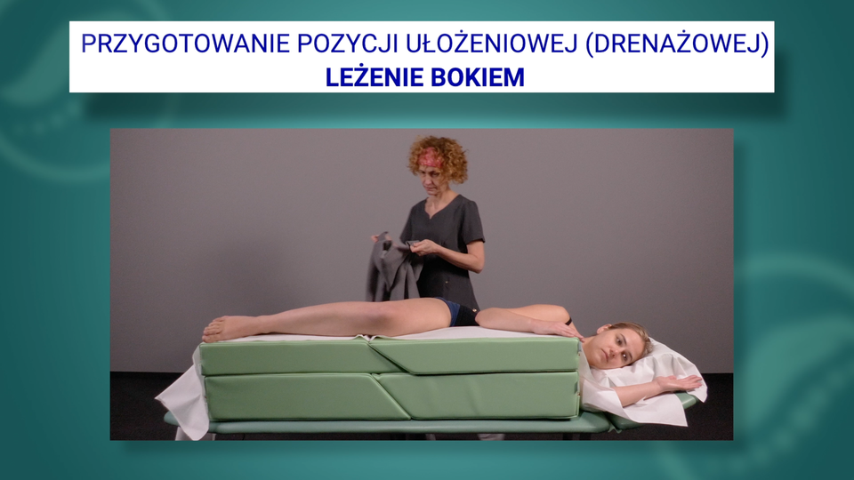 Przygotowania pozycji ułożeniowej (drenażowej) – leżenia na boku
