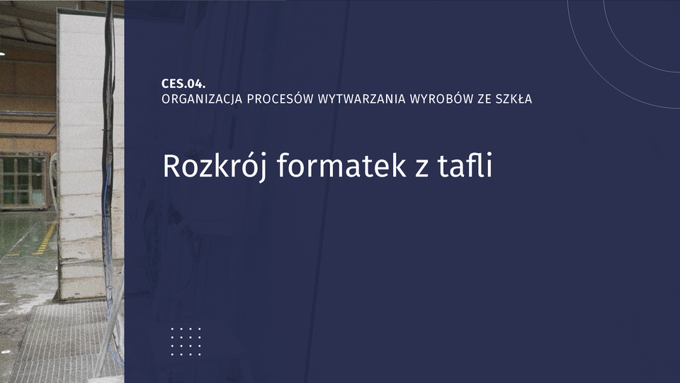 Sekwencje filmowe, pt. ,,Techniki przetwarzania szkła: Rozkrój formatek z tafli”.