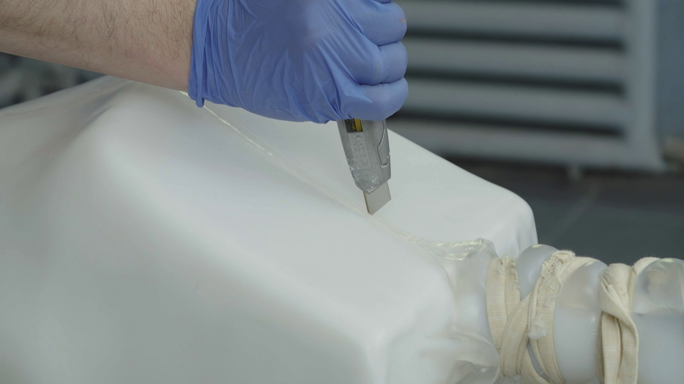 Film przedstawiający wykańczanie gorsetu korekcyjnego do leczenia skoliozy.