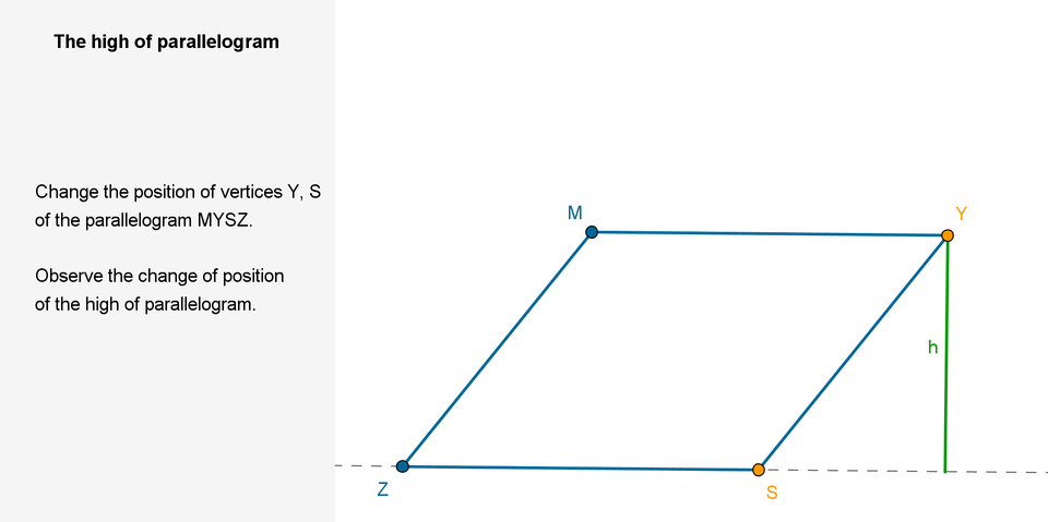 Aplet geogebry: Wysokość równoległoboku. Poniżej znajduje się galeria ilustracji stanowiących alternatywę dla apletu.