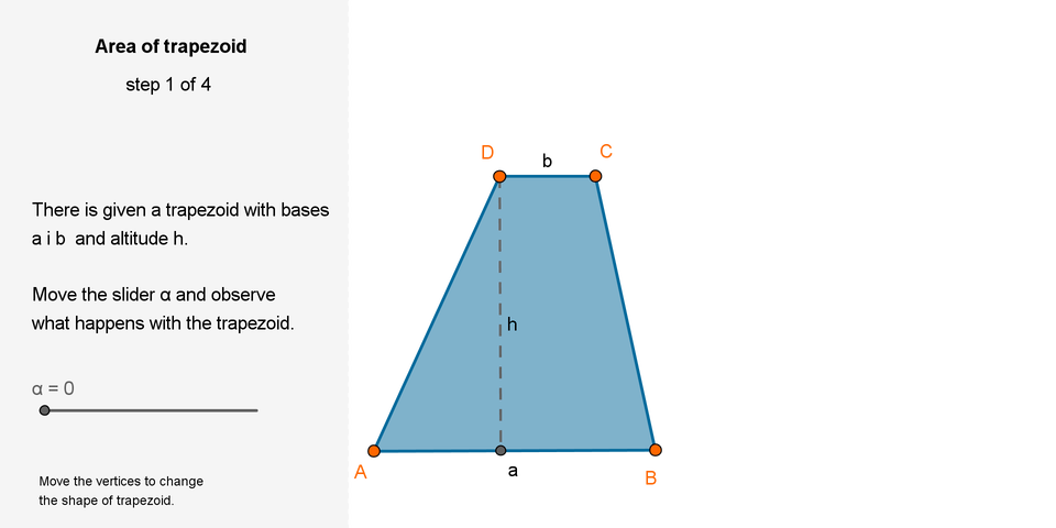 Geogebra aplet - pole trapezu. Galeria z opisami alternatywnymi poniżej.