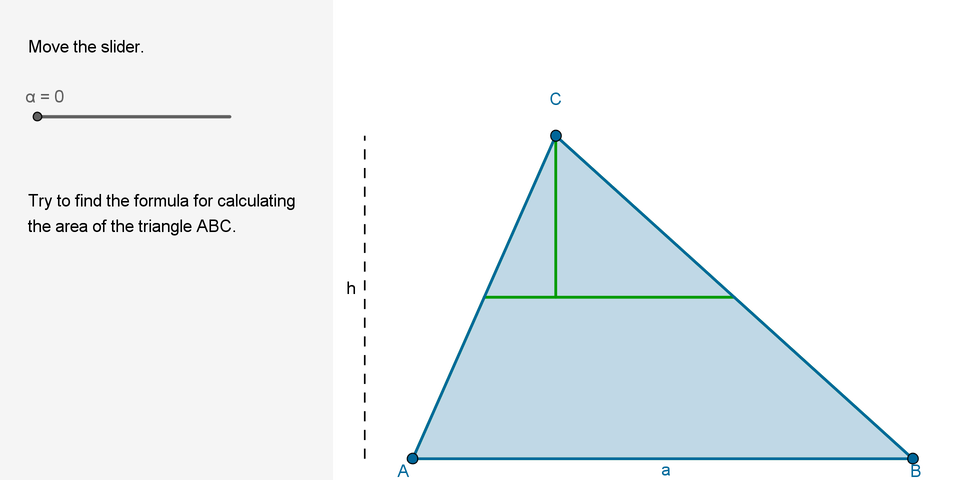 Geogebra aplet - Określanie pola trójkąta. Galeria z opisami alternatywnymi poniżej.