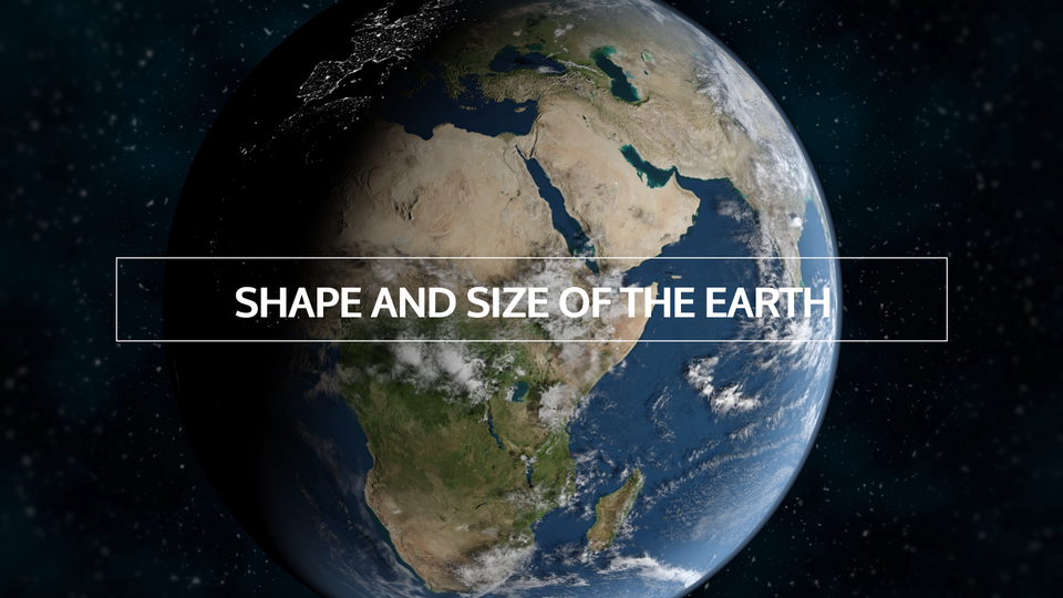 Animacja przedstawiająca związek pomiędzy siłą odśrodkową a kształtem ciała niebieskiego. Na ekranie kręcąca się planeta Ziemia widziana z kosmosu. Następnie rysunek kuli z zaznaczonym kierunkiem obracania, osią obrotu, siłą odśrodkową działającą na kulę i promieniami zaznaczonymi w dwóch miejscach: pośrodku kuli i bliżej bieguna północnego. Promień bliżej bieguna r = jedna druga R, promień pośrodku r = R. Zaznaczony wektor siły F przy biegunie krótszy niż pośrodku kuli. Na ekranie napis: R – average radius of the Earth, r – distance between the axis of rotation of the Earth and the point on its surface, F – centrifugal force acting at a given point on the Earth’s surface. W kolejnym ujęciu znów kręcąca się Ziemia widziana z kosmosu. Po prawej i po lewej stronie Ziemi pojawiają się strzałki wskazujące kierunek działania siły odśrodkowej. Ziemia ulega niewielkiemu spłaszczeniu, strzałki wydłużają się.