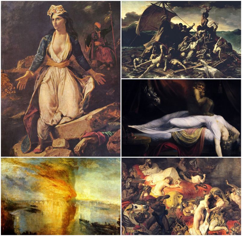 <i> "The Raft of the Medusa"<i/i></i>, <i>The Nightmare</i>, <i> Greece on the Ruins of Missolonghi</i>, <i> The Burning of the Houses of Lords and Commons </i>, <i>The Death of Saradanapalus</i>