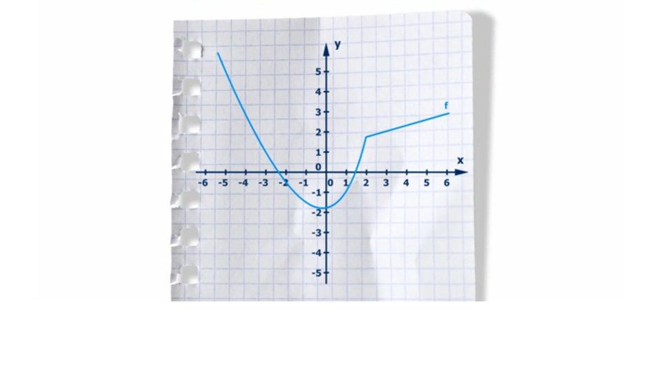 Wykres funkcji f w postaci krzywej leżącej w pierwszej i drugiej ćwiartce układu współrzędnych. Do wykresu funkcji należą punkty o współrzędnych (-1, 0), (0, 2), (1, 1).