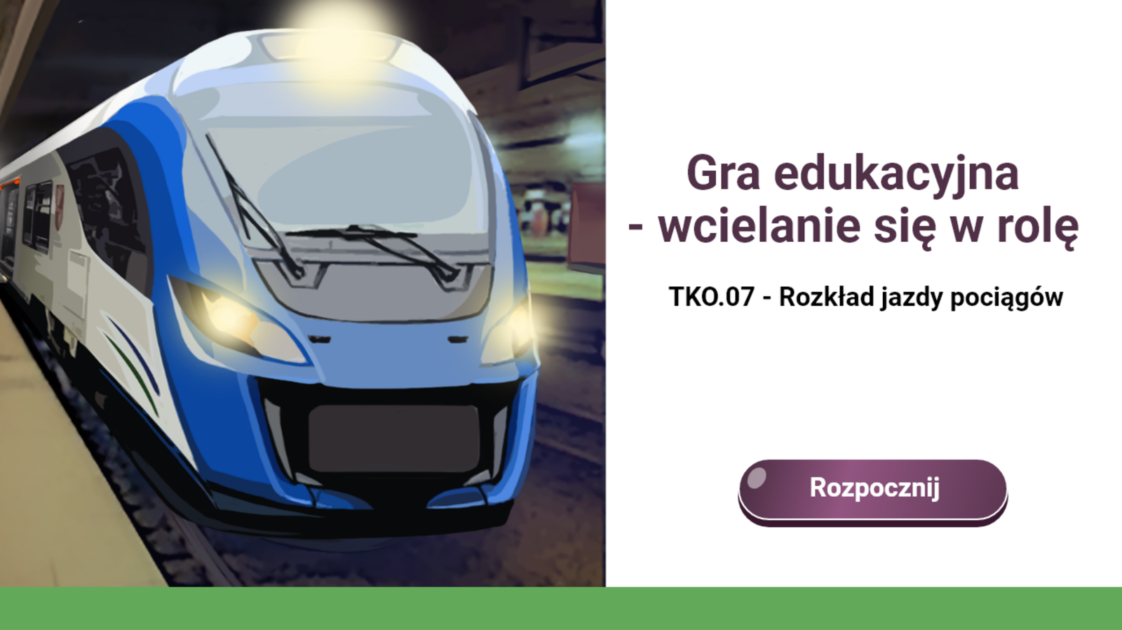 W pierwszym etapie określisz godziny przyjazdu i odjazdu dla pociągów na części trasy między stacjami Buk i Sosna.