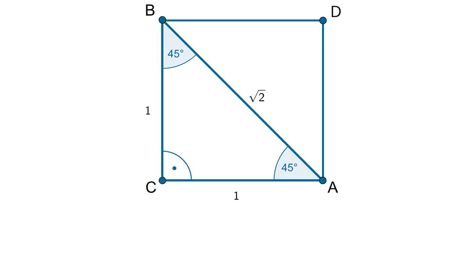 Open the slideshow and observe how we can calculate values of trigonometric functions of acute angles in right‑angled triangles 90°, 45°, 45°and 90°, 60°, 30°.