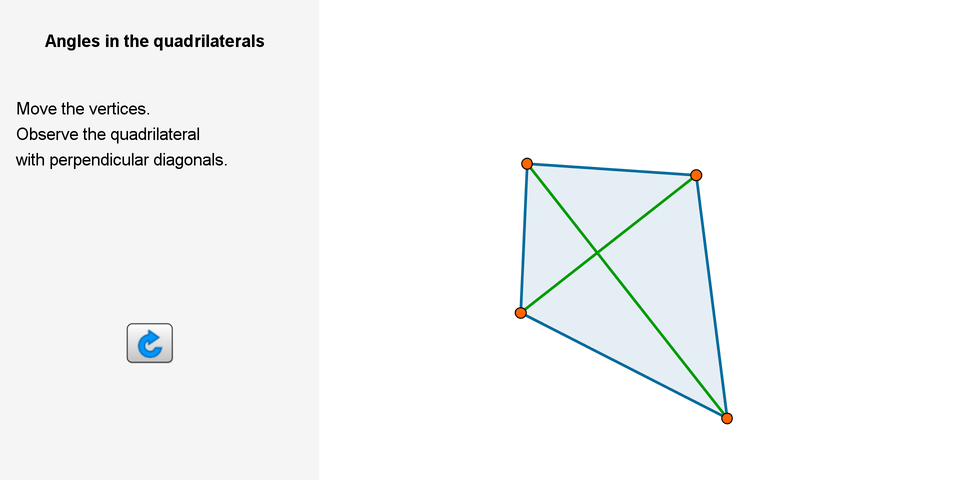 Geogebra aplet - twierdzenie o kątach w czworokącie. Galeria z opisami alternatywnymi poniżej.
