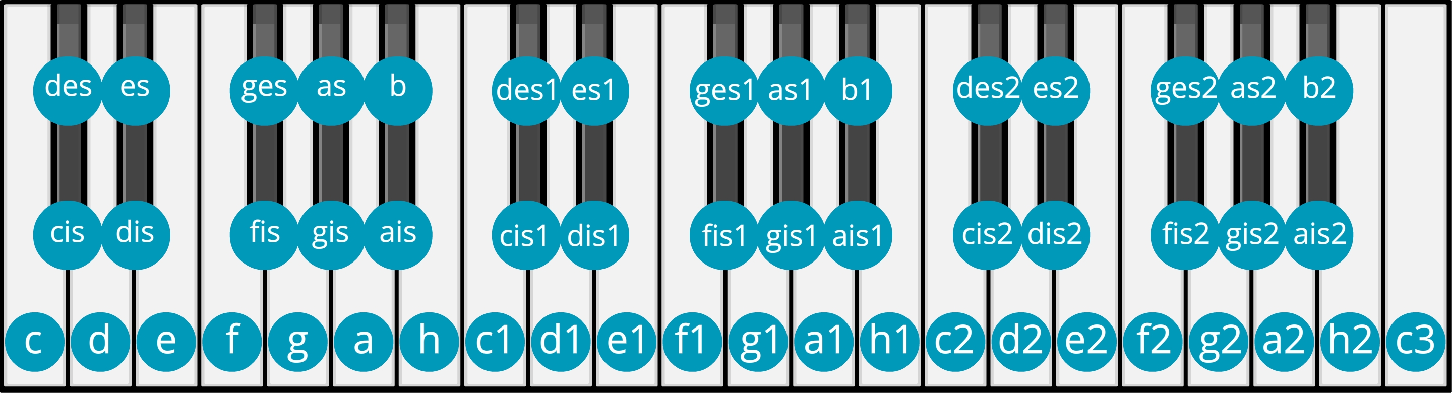 1. Klawisz ten może mieć dwie nazwy: nuta „c” z krzyżykiem to „cis”, nuta „d” z bemolem to des.