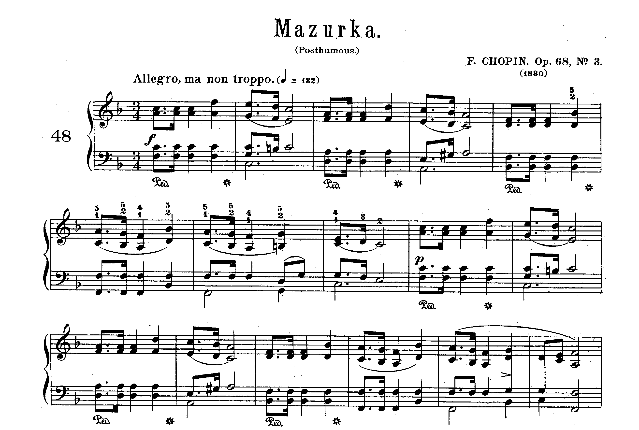 Fryderyk Chopin - Mazurek F‑dur op. 68 nr 3 – analiza formy