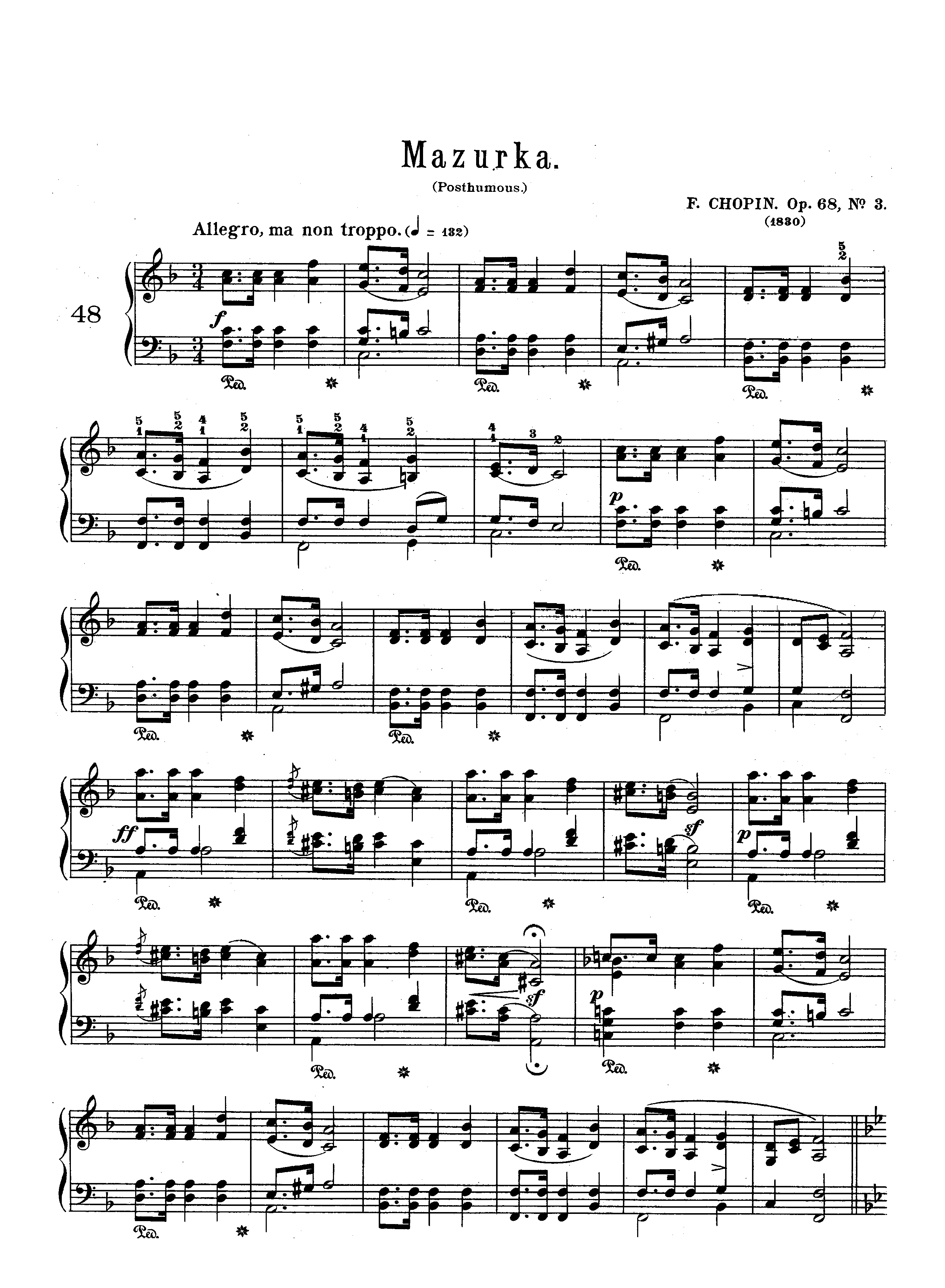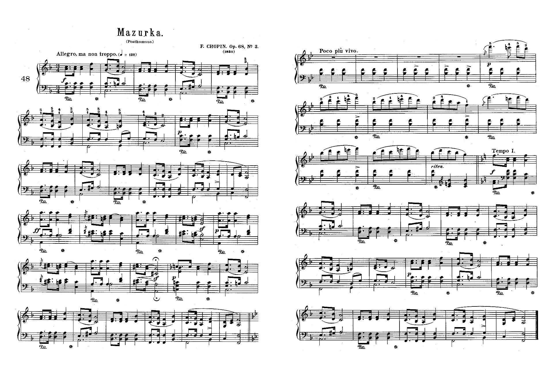 Mazurek F‑dur op. 68 nr 3 | t. 1–16 | t. 33–44 |