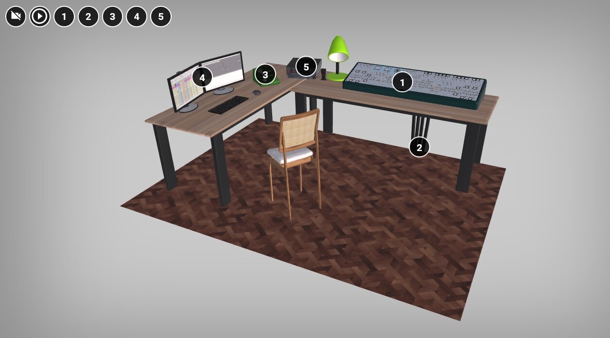 Model przedstawia sprzęt do zarządzania ruchem w nastawni. Jest to model pomieszczenia, w którym stoi biurko, przy którym postawiono krzesło. Na biurku znajduje się komputer posiadający dwa monitory. Coraz częściej stosowany System Wspomagania Dyżurnego Ruchu () zastępuje papier i długopis. Na drugim ekranie zazwyczaj jest obsługa lub blokady liniowej. Obok znajduje się centralka telefoniczna, czyli jedno z głównych urządzeń łączności kolejowej, zawiera ona połączenia do wszystkich sąsiednich stacji oraz posterunków. Dalej mamy radiotelefon, czyli kolejne urządzenie radiołączności - radiotelefon firmy Koliber działający na falach krótkich. Starszym typem jest radio firmy Radmor. Obok znajduje się pulpit nastawczy. W tym modelu przedstawiony pulpit nastawczy to pulpit kostkowy (urządzenia nastawcze mogą być kluczowe, mechaniczne, suwakowe, kostkowe – typu E lub komputerowe). Pulpit ma kształt zbliżony do prostopadłościanu, znajduje się na nim wiele oznaczeń i przycisków. Ostatnim elementem są kable przymocowane pod blatem. Kable idą do przekaźnikowni, gdzie odbywa się cały proces przekazywania sygnałów.