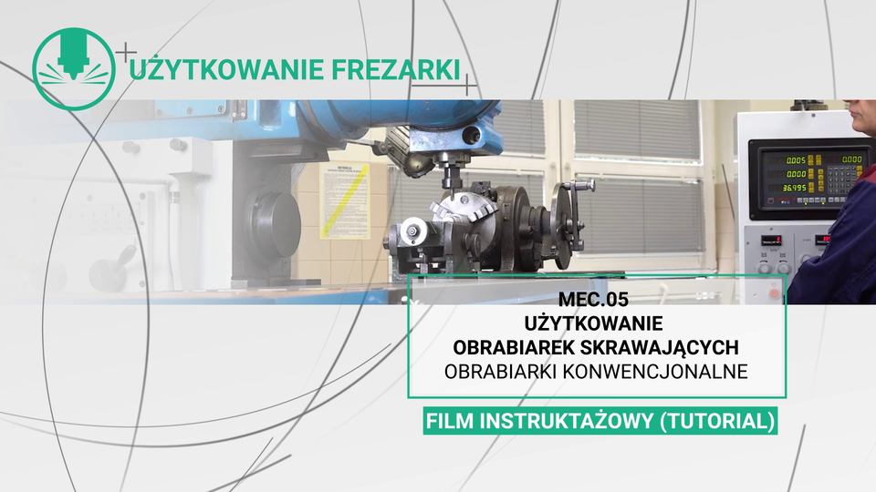 Film nawiązujący do treści materiału pod tytułem: Użytkowanie frezarki. MEC.05. Użytkowanie obrabiarek skrawających. Obrabiarki konwencjonalne. Film instruktażowy (tutorial).